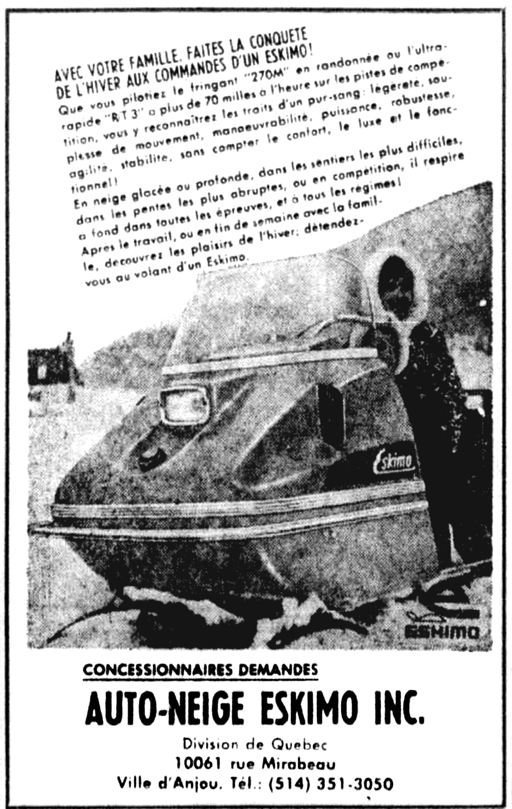 ESKIMO SNOWMOBILE COMPANY WHICH IS IN SAINTE HENEDINE, QUÉBEC.