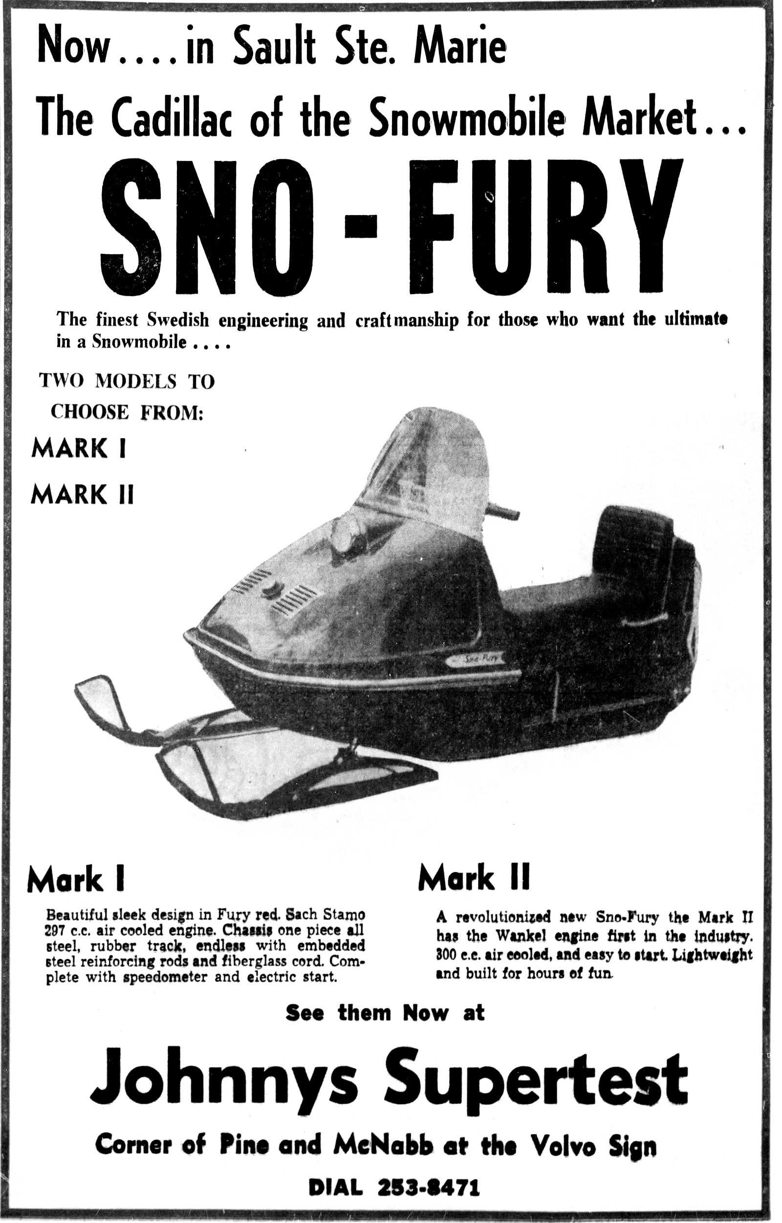 1969 SNO FURY MARK l & MARK ll SNOWMOBILES